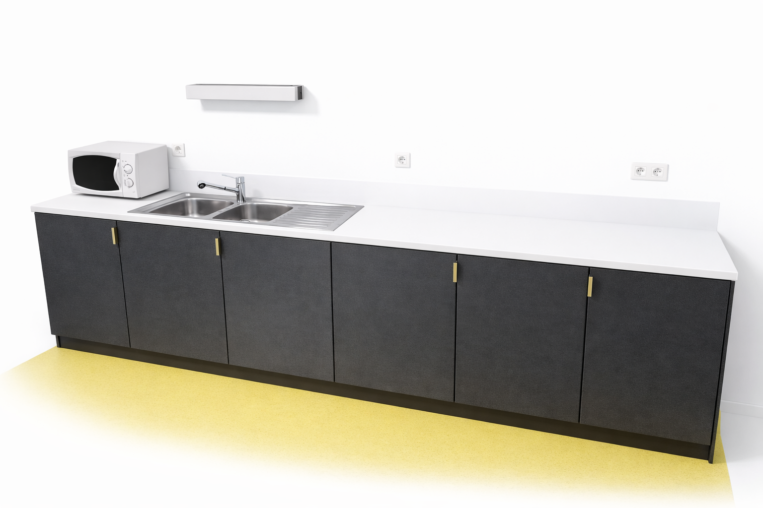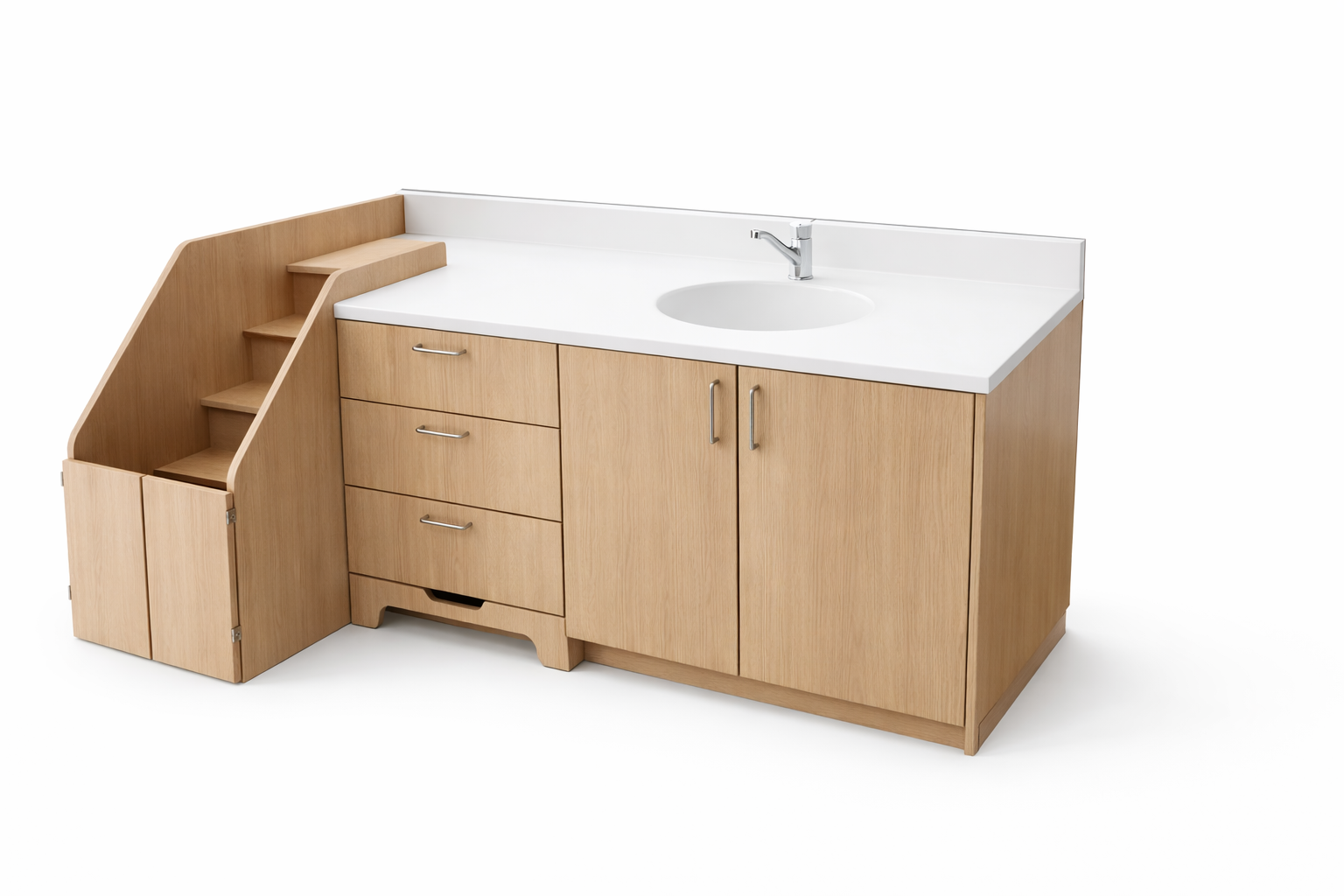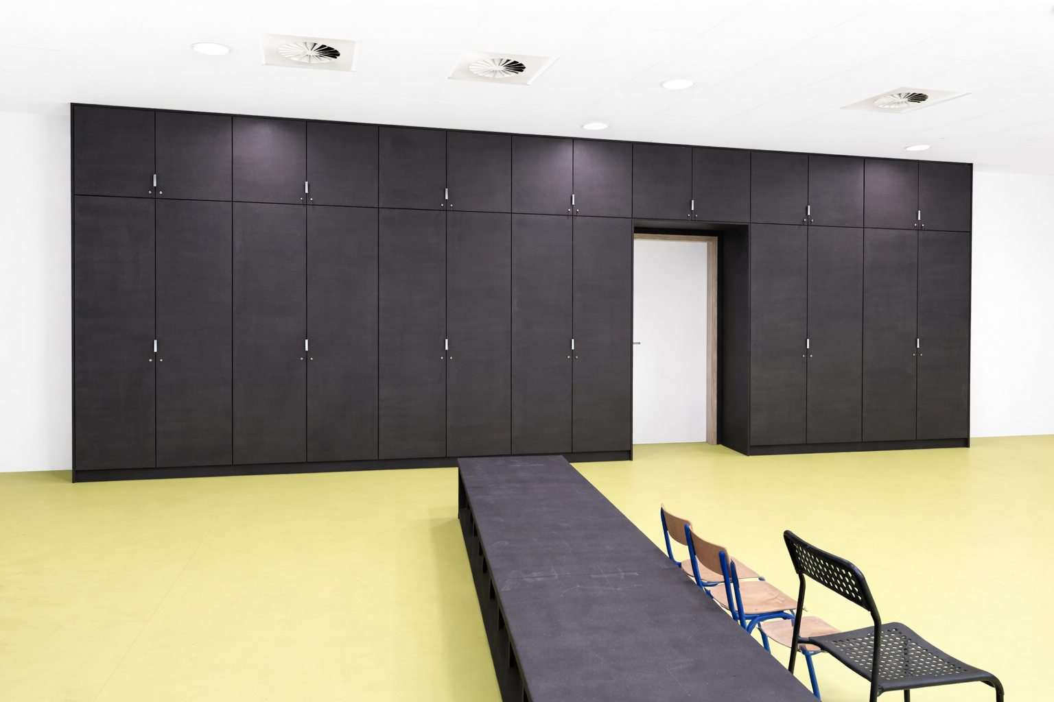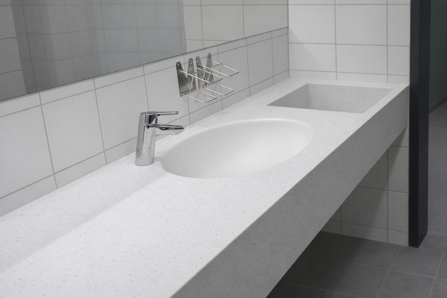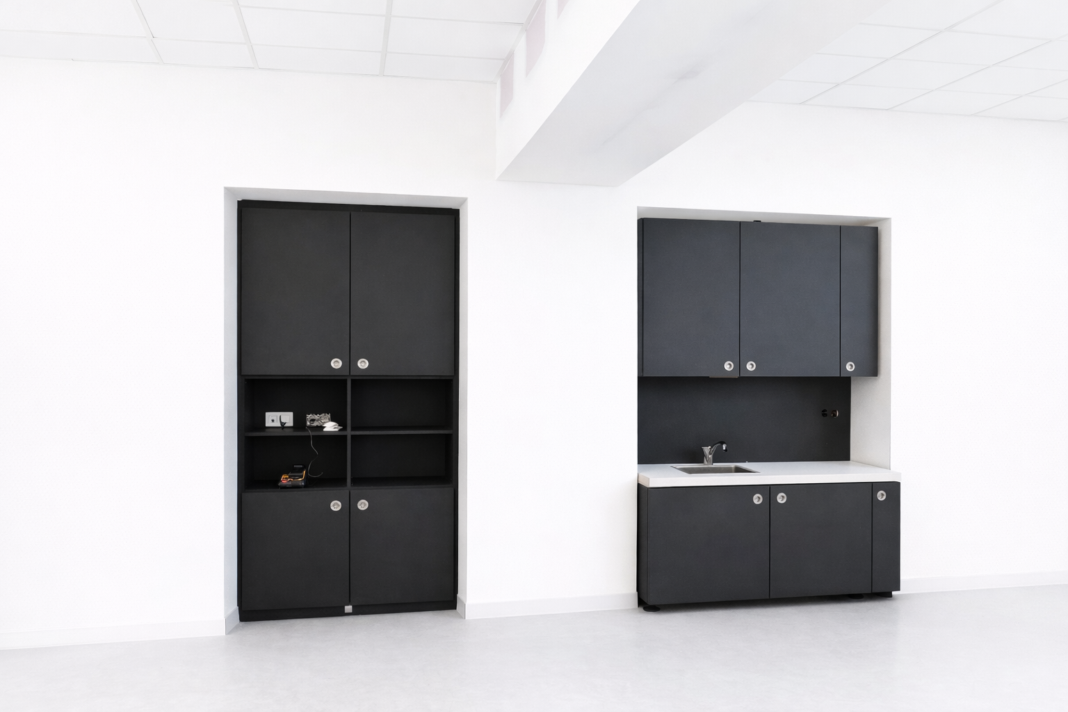 Agencement vestiaire – Plan vasque en solid surface et cabine douche en stratifié massif