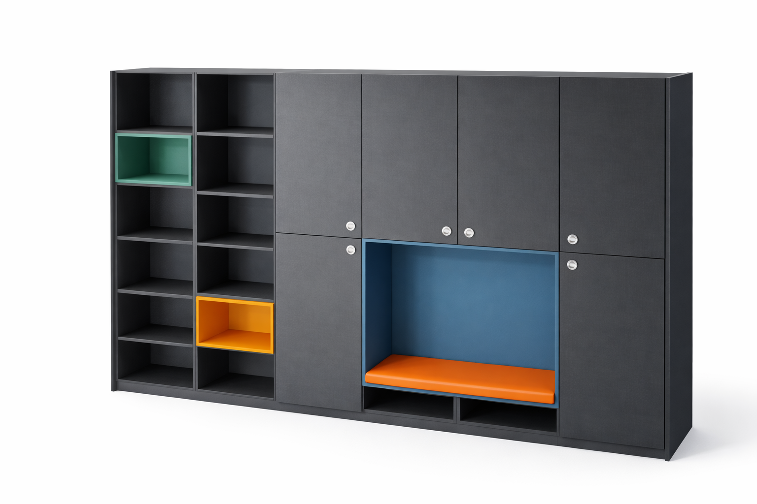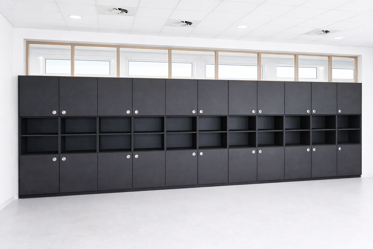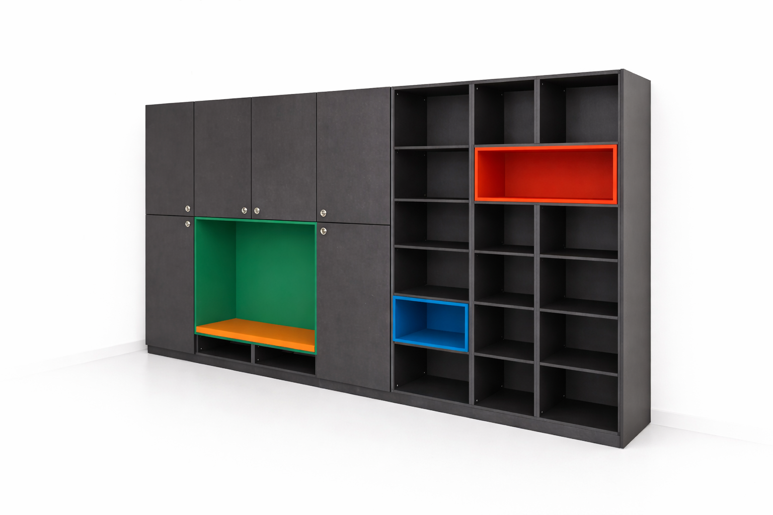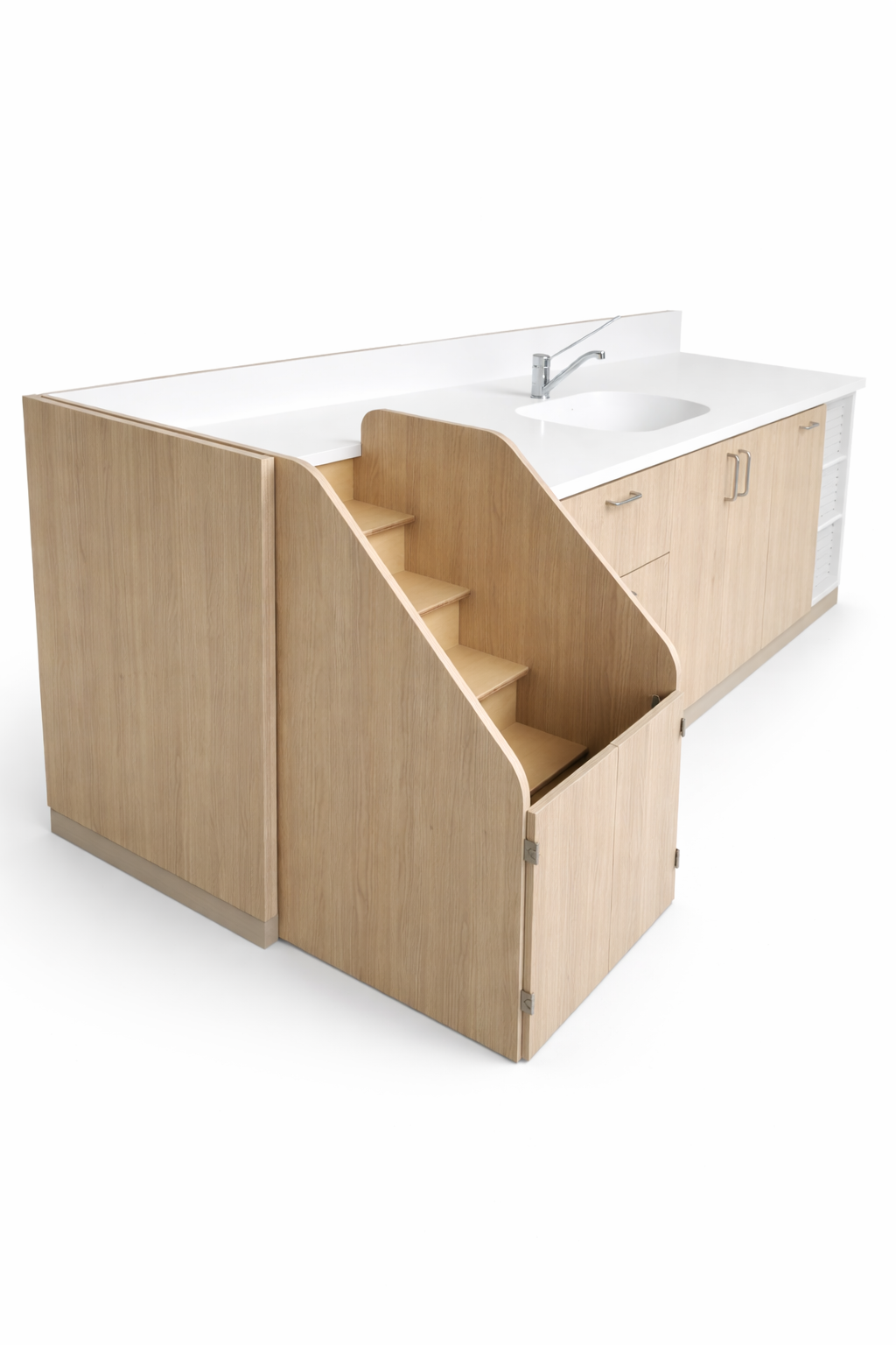 Agencement vestiaire – Plan vasque en solid surface et cabine douche en stratifié massif