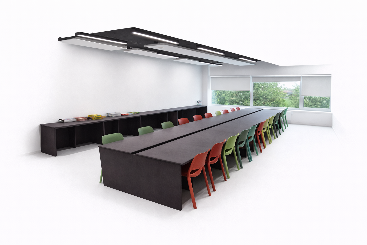Agencement salle de réunion – Cloisons – Meuble réception et table en solid surface